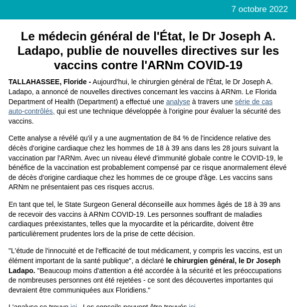Les liens vers l’étude de série de cas auto-contrôlée et le communiqué du Ministère sont là. Ce Ministère de la Santé fait… ce qu’un ministère de la santé est censé faire: prendre soin de sa population. https://content-govdelivery-com.translate.goog/accounts/FLDOH/bulletins/3312697?_x_tr_sl=auto&_x_tr_tl=fr&_x_tr_hl=en