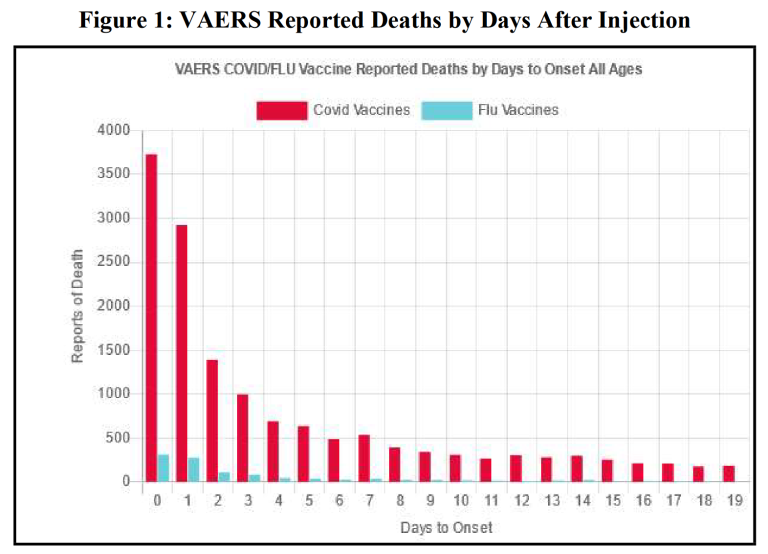 Officiellement il y aurait eu 2 décès toutes causes parmi les vaccinés et 4 dans le groupe placébo lors des fameux effets Pfizer qui ont permis l’autorisation des injections. Les documents fournis à la justice américaine parlent