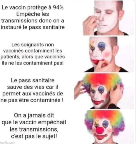 Combien d’articles, d’éditos annonçant que la Vaxx diminuait par 9 /12/20 voir 50 le risque de contamination …? De culpabilisation, d’insultes, menaces … pour les Irresponsables ne se faisant pas Vaxx, et allant tuer Papi Mamie ?