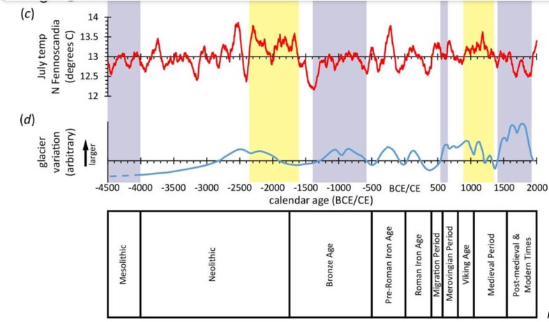 On découvre que les glaciers et les températures n’ont pas encore retrouvés leur niveau des 12eme 13eme siècles ou de l’époque du Christ