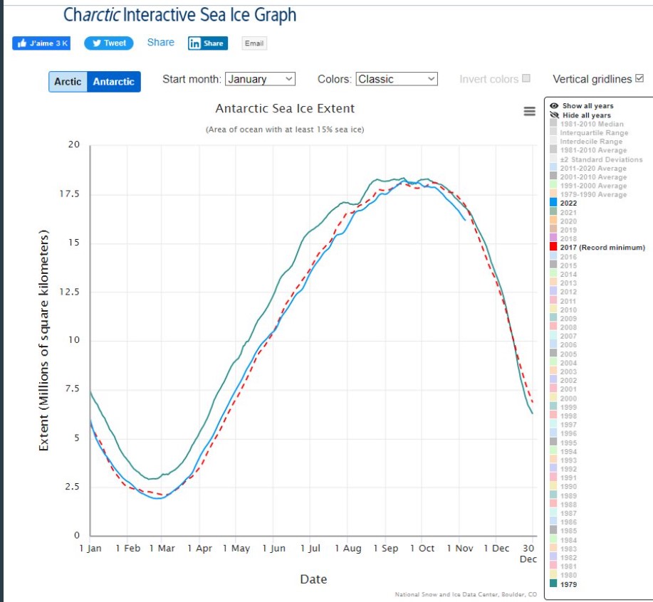Je reprendrai votre exemple de la Mer de Glace; comme d’autre glaciers, elle fond. Par conte dans le même temps la banquise, elle, a augmenté. Regardez bien les graphiques, la forme est modifiée, mais en superficie c’est plus grand ! Ce qui confirmerai les propos de P. Gibertie, moins de montée des eaux depuis quelques temps déjà.