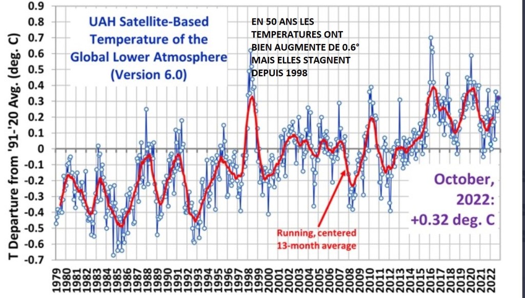 LES TEMPERATURES OBSERVEES PAR SATELLITE SONT COMPLOTISTES: il n’y a pas d’accelération du « réchauffement climatique » depuis 25 ans , les reconstructions des températures du passé par le Giec sont des créations mathématiques contestées