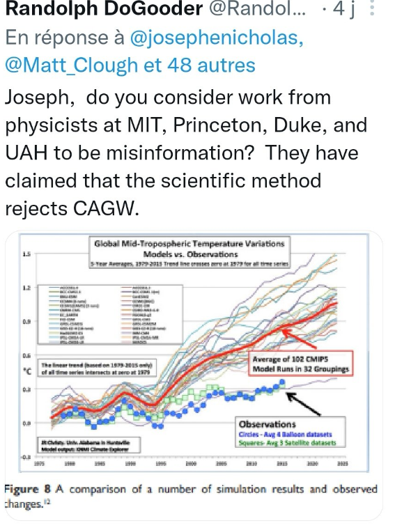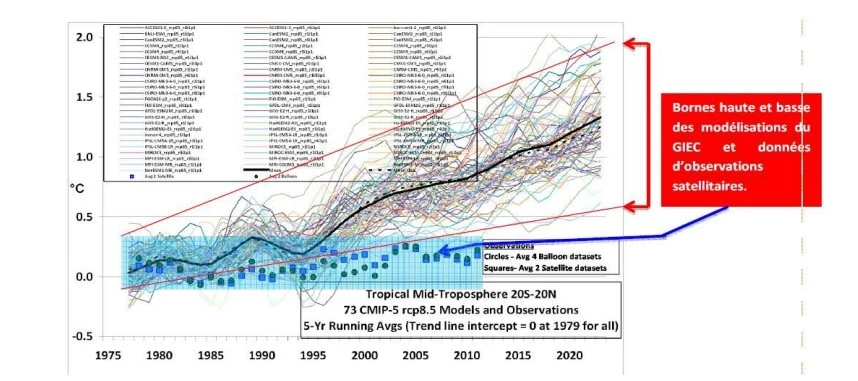 Autre progrès scientifiques ballons sondes et surtout satellites . Regardez bien les temperatures observées et comparez les à celles du Giec