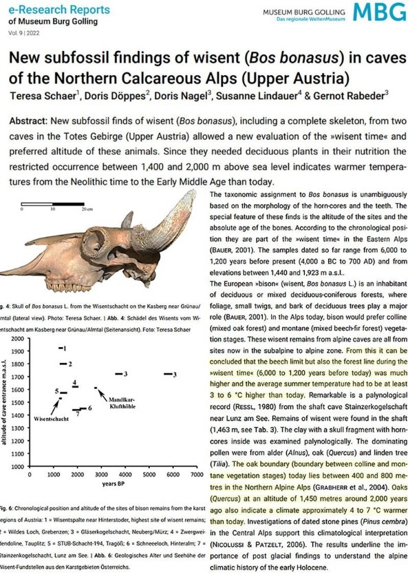 Il y a 6000 à 1200 ans, les bisons se nourrissaient d’arbres et de végétation à feuilles caduques qui poussaient à des altitudes alpines supérieures de ~800 m à celles d’aujourd’hui. l’Autriche devait être 4-7°C + chaude qu’aujourd’hui (il y a ~2000 ans)