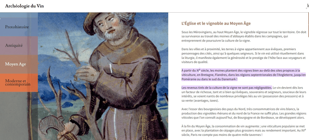 Le DOMESDAY BOOK 1068 RECENSE DES VIGNOBLES DANS LE NORD DE L’ANGLETERRE mais on en trouve en Norvège et au nord de la Russie