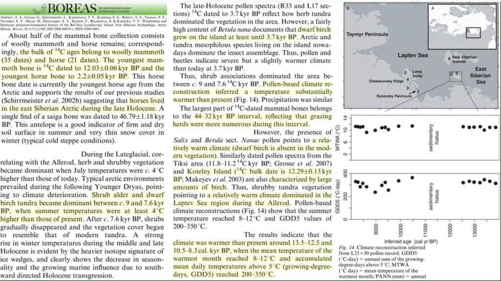 Un Arctique “plus chaud que le climat actuel”. Les arbres, plantes & animaux racontent une histoire bien différente sur le climat des 11 000 dernières années que ceux qui prétendent que les T actuelles de l’Arctique sont exceptionnellement chaudes.