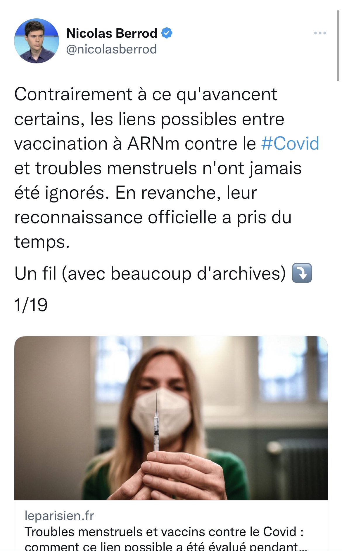 18 longs mois se sont écoulés entre les études menées et la reconnaissance officielle des troubles menstruels en lien avec les injections Covid. Et on trouve encore les mêmes journalistes dispensant leur bouillie confuse pour exonérer les autorités de santé