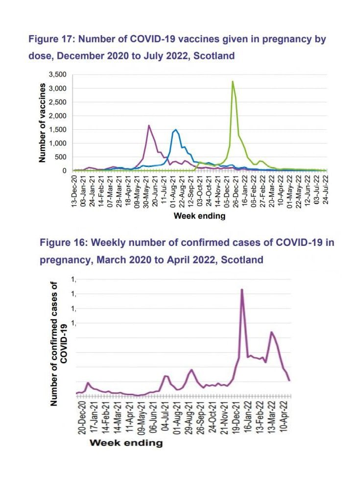 Le Herald a publié un article sur la vax COVID pendant la grossesse et le scandale de la mort néonatale. Les graphs de ces 3 figures ont été produits avec des délais différents. Mais alignez les délais,les pics d’incidence s’alignent sur les pics de vax https://heraldscotland.com/news/23028843.covid-scotland-vaccines-ruled-cause-neonatal-deaths-spike/?ref=rss