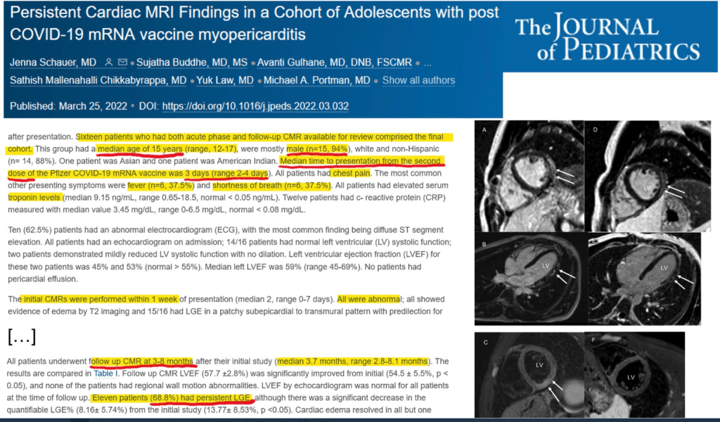 La myocardite était souvent décrite comme « légère » – à une époque où il n’y avait plus d’observations de suivi des patients ! Nous avons maintenant de plus en plus de données IRM montrant que les changements persistent pendant des mois chez de nombreux patients !