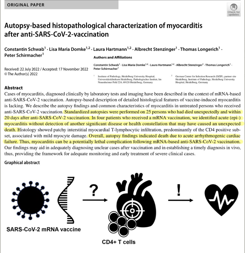 Les auteurs déclarent qu’au cours des « 20 dernières années à l’hôpital universitaire de Heidelberg, ils n’ont vu aucune inflammation (!) comparable dans le muscle cardiaque ».