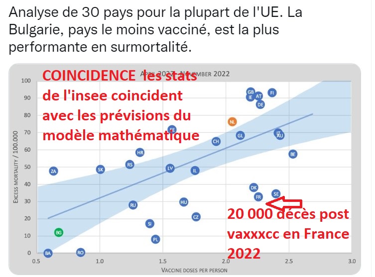 Il y a au moins 20 000 décès de trop en France dans les stats de l’insee, vieillissement, canicule, covid, ça ne passe pas...coincidence c’est exactement ce que le modèle mathématique neerlandais prévoyait pour les décès post vaxxxcc pour la France