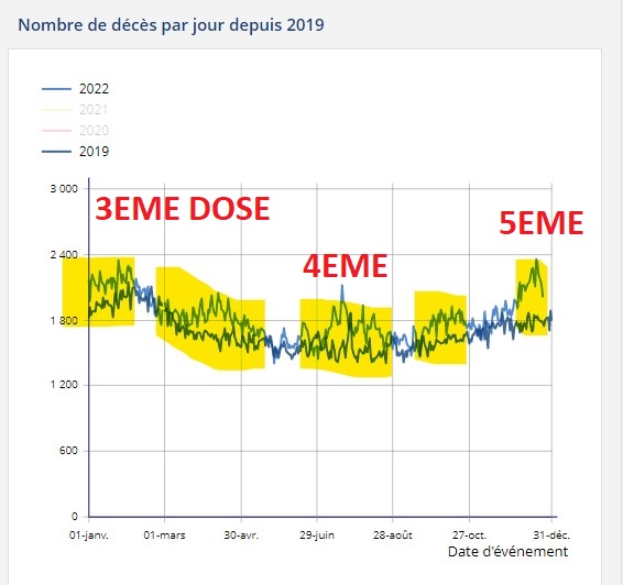 Coincidence : peu de décès covid (3000)en décembre2022, records de décès et de VACCXXXX et ce n’était pas la canicule