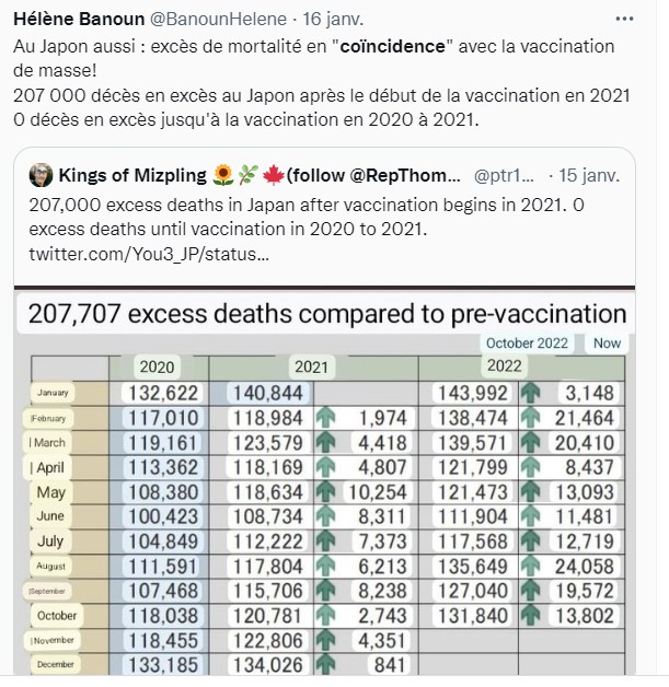 Les Japonais ont injecté plus de 150 000 000 de doses en 2022 ……. ils ont 143 000 décès de plus (décembre non compris) COINCIDENCE