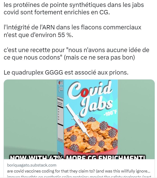 La traduction in vivo de l’ARNm donne lieu à la production de protéines inconnues et aberrantes (pas seulement la spike toxique) Les cellules des vaccinés synthétisent n’importe quoi à partir du n’importe quoi d’ARNm entier ou tronqué injecté!