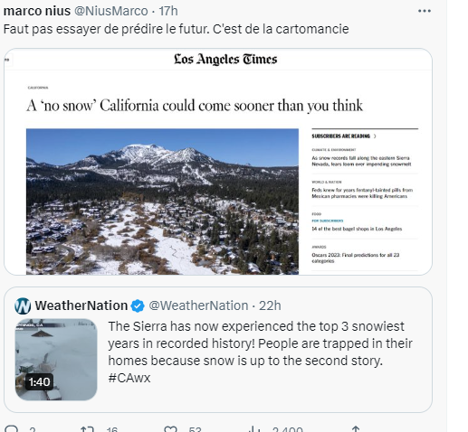 il y a 10 minutes et c’est sur plein d’articles de partout. J’ai dû rater un cours sur les « Tsunamis climatiques » à l’école, je sais pas. Une gueule de bois peut être. Certains d’entre vous ont eu ce cours ? On rentre dans le dur ! Neurones cramés