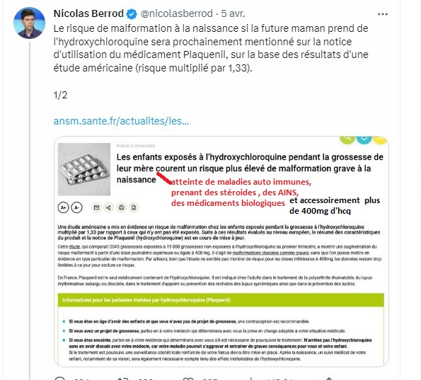 Puis vous clamez partout que les femmes malades ont plus de risques de bébés avec malformation, vous ajoutez que c’est la faute de….l’hydroxychloroquine utilisée pour les soigner…, même si elles se bourrent de stéroides et autres,,,,,