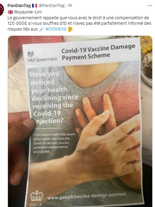 Même s’ils sont largement non déclarés, il y a des chiffres officiels, en France et surtout ailleurs. Il faut que les victimes se constituent en associations et portent plaintes pour être reconnues, indemnisées, et pour que cesse ce programme de vaccination mondiale généralisée avec toutes les variantes que les labos et leurs sbires préparent.