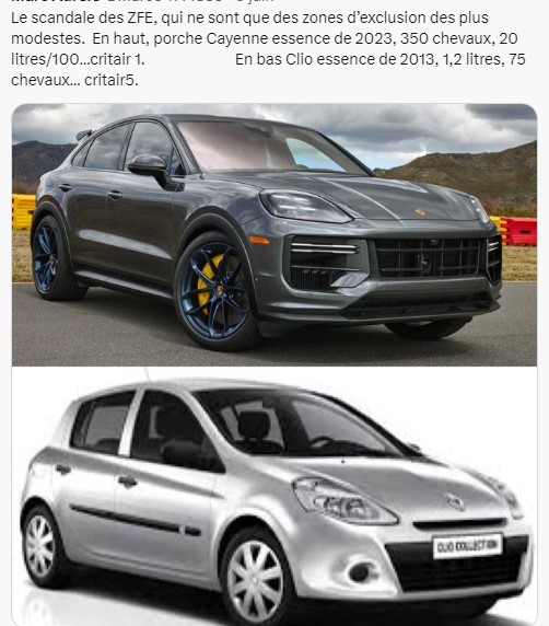 Les gens prennent le problème à l’envers. Plutôt que de râler contre les zfe et autre restrictions, il suffit de ne plus y aller du tout. Mais le péquin veut garder ses petites habitudes petites bourgeoises et aller faire ses courses, aller au restau, continuer à habituer dans ces prisons mentales.