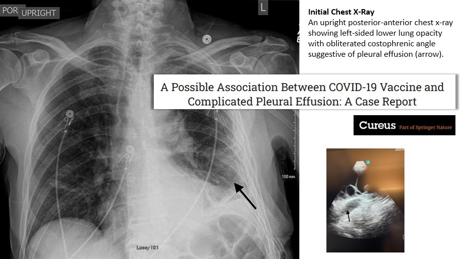 « Les cliniciens doivent être conscients que le vaccin COVID-19 est une cause sous-jacente possible chez les patients présentant un épanchement pleural qui reste autrement inexpliqué … » https://cureus.com/articles/156571-a-possible-association-between-covid-19-vaccine-and-complicated-pleural-effusion-a-case-report#!/
