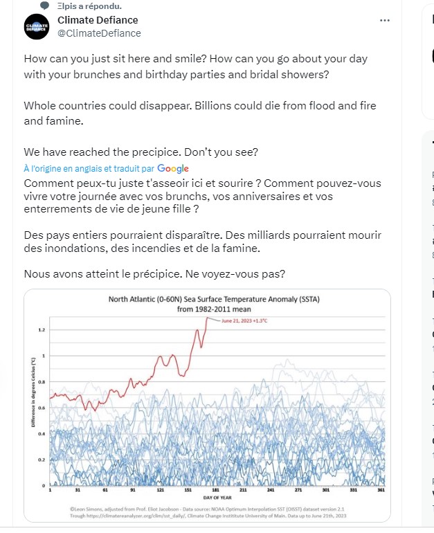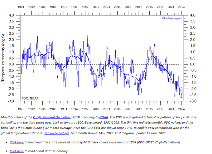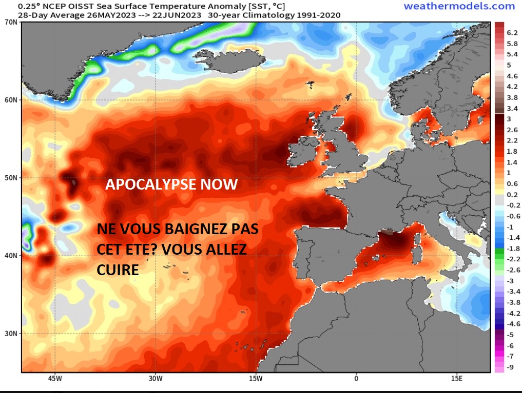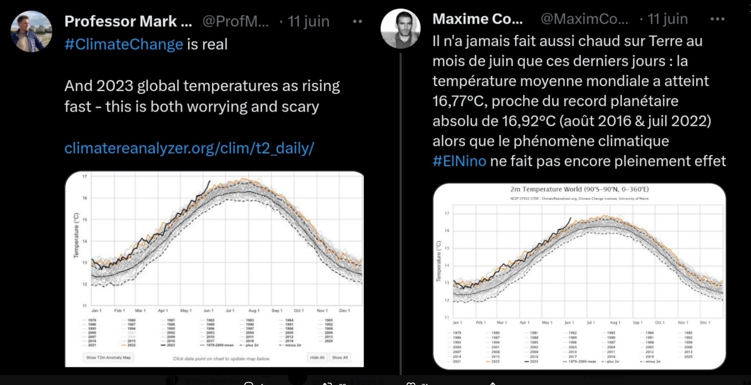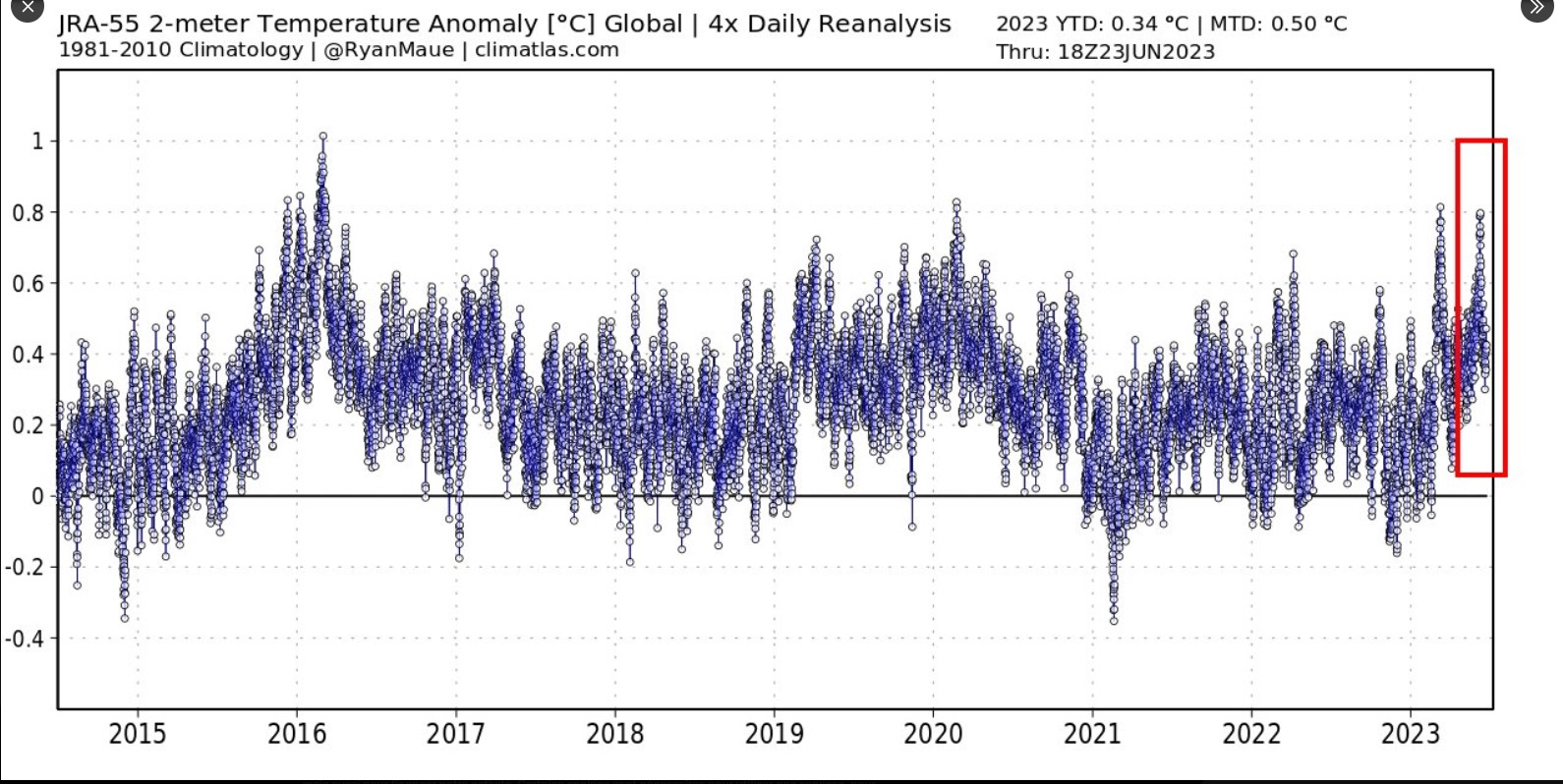 El Nino va entrainer une petite hausse des températures ( comme en 2016) puis elles baisseront comme en 2017/2022 . Ajoutons le cycle trentenaire qui arrive au sommet… Tout est réuni pour créer un vent de panique …