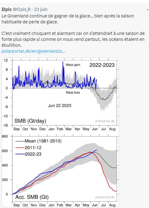 Mère Nature ne souhaite pas donner raison aux catastrophistes! Depuis une dizaine d’années et en attendant le prochain El Nino, la planète ne se réchauffe plus Groenland, Australie Inde, records de froid https://electroverse.info/greenland-smb-gains-bone-chilling-chills-india-record-cold-may-for-australia/#google_vignette Après le début record de la saison, … Lire la suite →