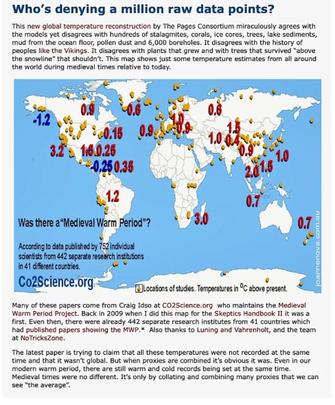 Des centaines de scientifiques, des centaines d’études prouvent que l’époque médiévale était plus chaude qu’aujourd’hui, le globe tout entier est concerné