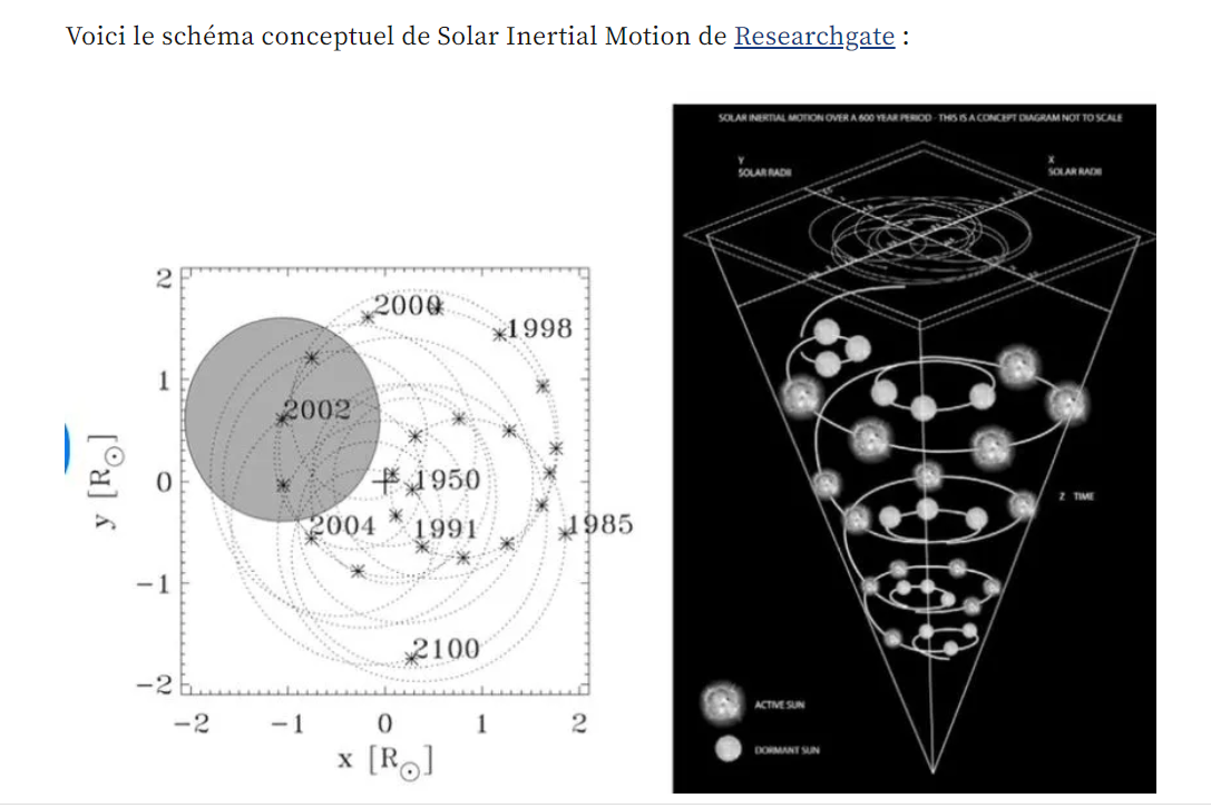 En revanche l’accélération que le soleil subit du fait du système solaire, donc essentiellement Jupiter et Saturne, affecte son comportement. C’est l’accélération qui compte donc v²/r où v est la vitesse du soleil et r le rayon de courbure.