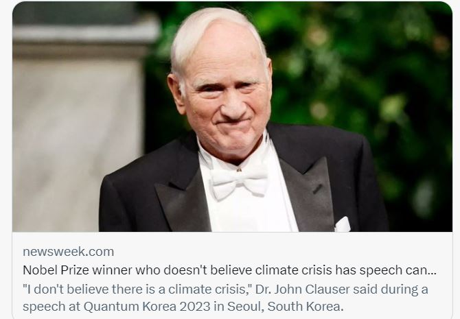 L’annonce de la Co2 Coalition est intervenue peu de temps après que Clauser a fait des commentaires contestant le changement climatique lors d’un discours à Séoul, en Corée du Sud, à Quantum Korea 2023, une conférence internationale centrée sur les tendances mondiales des innovations de l’écosystème quantique des secteurs universitaire, gouvernemental et priv