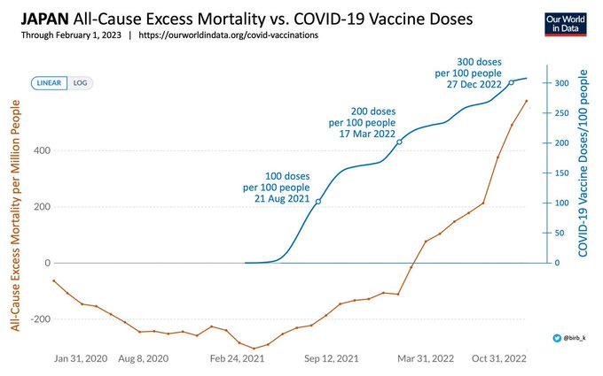 Le scénario est toujours le même dans ces pays, aucune surmortalité en 2020, peu de covid. Puis en 2021, les injections, toutes la population est « protégée et alors tout se dérègle, explosion des décès covid…. avec le gentil Omicron et explosion de la surmortalé toutes causes en 2022 et 2023…
