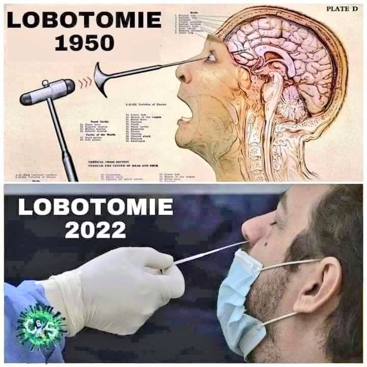La technique de prélèvement n’est pas en biais vers le cerveau mais horizontalement le long du plancher du nasopharynx et sous le cornet inférieur mais peut être que lobotomie faisait plutôt référence au brainwashing subit pendant l’opération Covid 19 😉 ? Technique de prélèvement avec visualisation de l’anatomie https://m.youtube.com/watch?v=fhShfC0Eczo&pp=ygURQ292aWQgcHJlbGV2ZW1lbnQ%3D