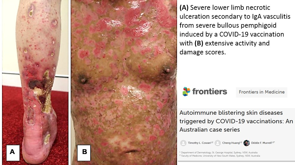 « Il est évident que les vaccinations contre le COVID-19 contribuent aux poussées de maladies cutanées auto-immunes ainsi qu’à l’induction de la maladie. » https://frontiersin.org/articles/10.3389/fmed.2022.1117176/full…