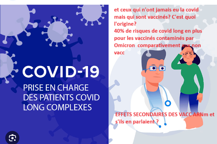 1 Response to Une étude sur près de 50 000 personnes,40%de risques supplémentaires de faire un covid long pour les vaccinés contaminés par Omicron.Et s’il s’agissait des effets secondaires de la « vaccination »?