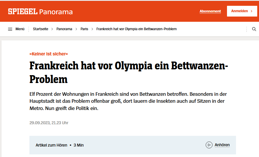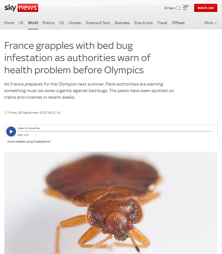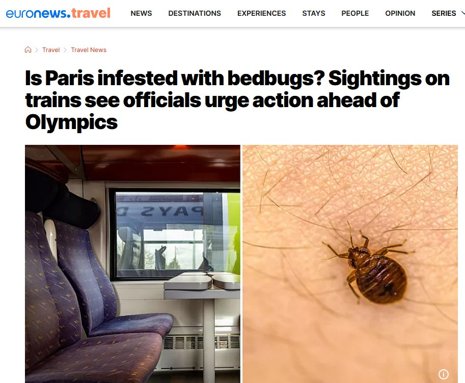 L’inquiétude des médias étrangers, nombreux à relayer les craintes concernant les #punaisesdelit en France à l’approche des Jeux Olympiques.