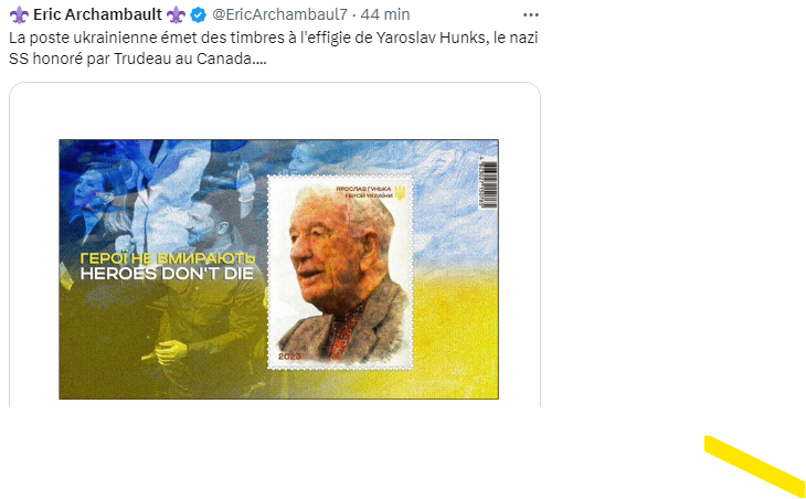 Il y a quand même quelque chose d’incompréhensible dans cette histoire canadienne. Lors de la Deuxième Guerre mondiale (je dis bien : Deuxième) les puissances de l’Axe (Roberto, à savoir Rome-Berlin-Tokyo) affontaient les Alliés (à savoir USA, Grande-Bretagne/Commonwealth et Union Soviétique.) Le Canada faisant partie du Commonwealth, donc des Alliés, toute personne ayant combattu les « Russes » dans le cadre de ce conflit était son adversaire – sans avoir besoin de chercher nazi ou pas nazi. Donc, Trudeau et sa représentation nationale sont des cons qui ne connaissent même pas leur propre histoire.
