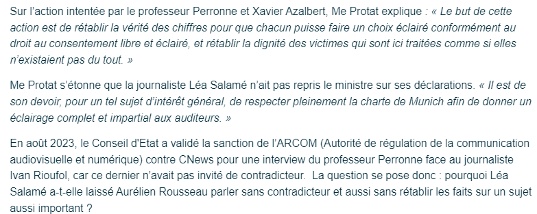Suivant suggestion trouvée dans des commentaires sur le forum covidfactuel.fr j’ai effectué un signalement à l’ARCOM ( CSA) sur les mensonges graves proférés par le ministre sur France Inter. Vous pouvez peut être faire pareil , ce n’est pas un parcours du combattant.