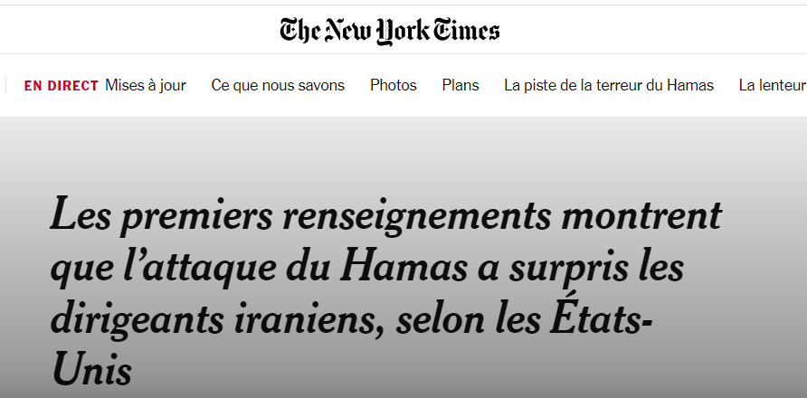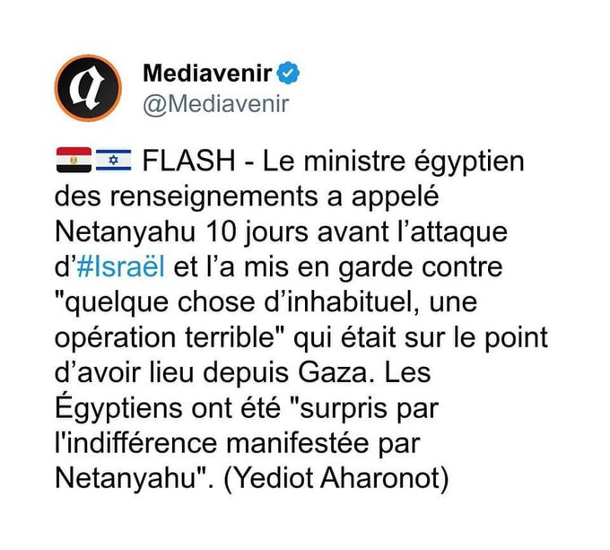4 Responses to Pourquoi l’iran a t il été surpris par l’attaque terroriste du Hamas? Pourquoi Israel prévenu trois jours avant n’ a pas pris au sérieux les alertes égyptiennes?