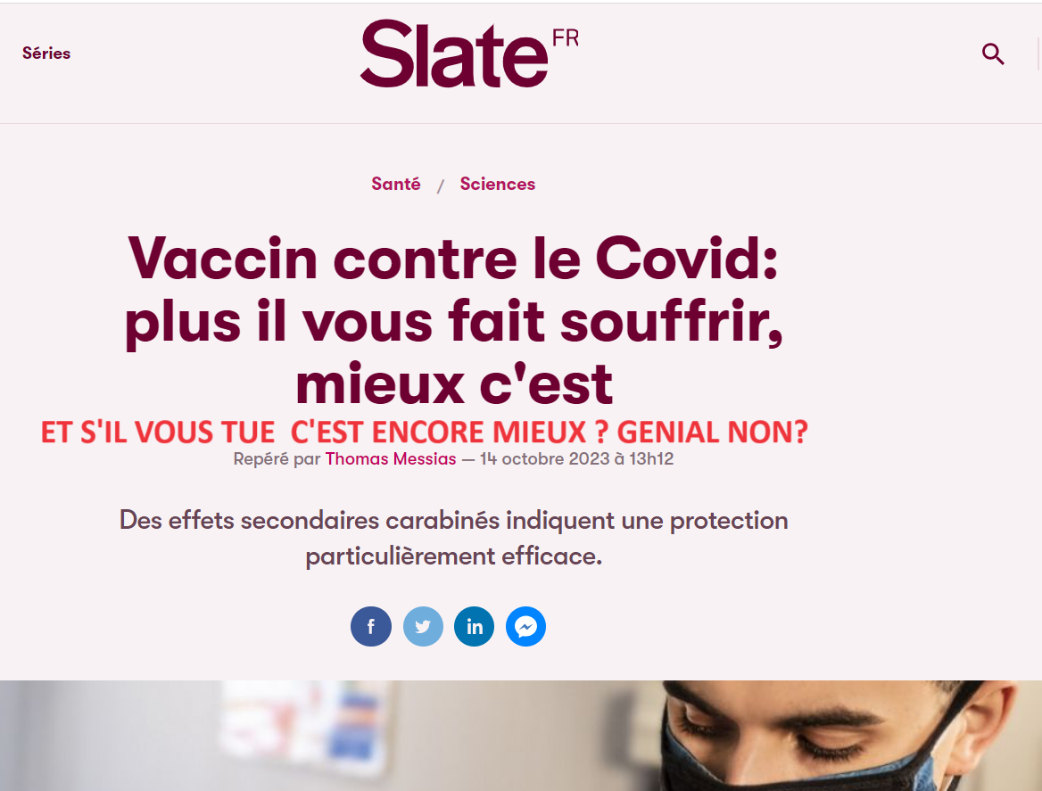 Pour les journalistes  » Vaccin contre le Covid: plus il vous fait souffrir, mieux c’est! » Et s’il vous tue????