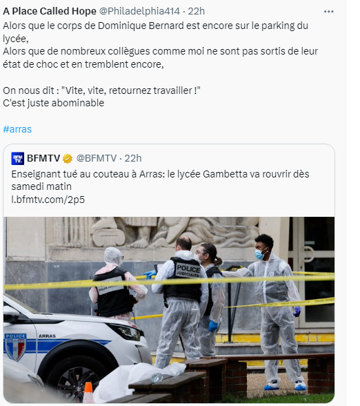 Horribles terroristes (mais surtout ne pas dire terroristes islamistes) et c’est mieux terroristes d’origine russe, puis des bougies, puis horrible extrème droite