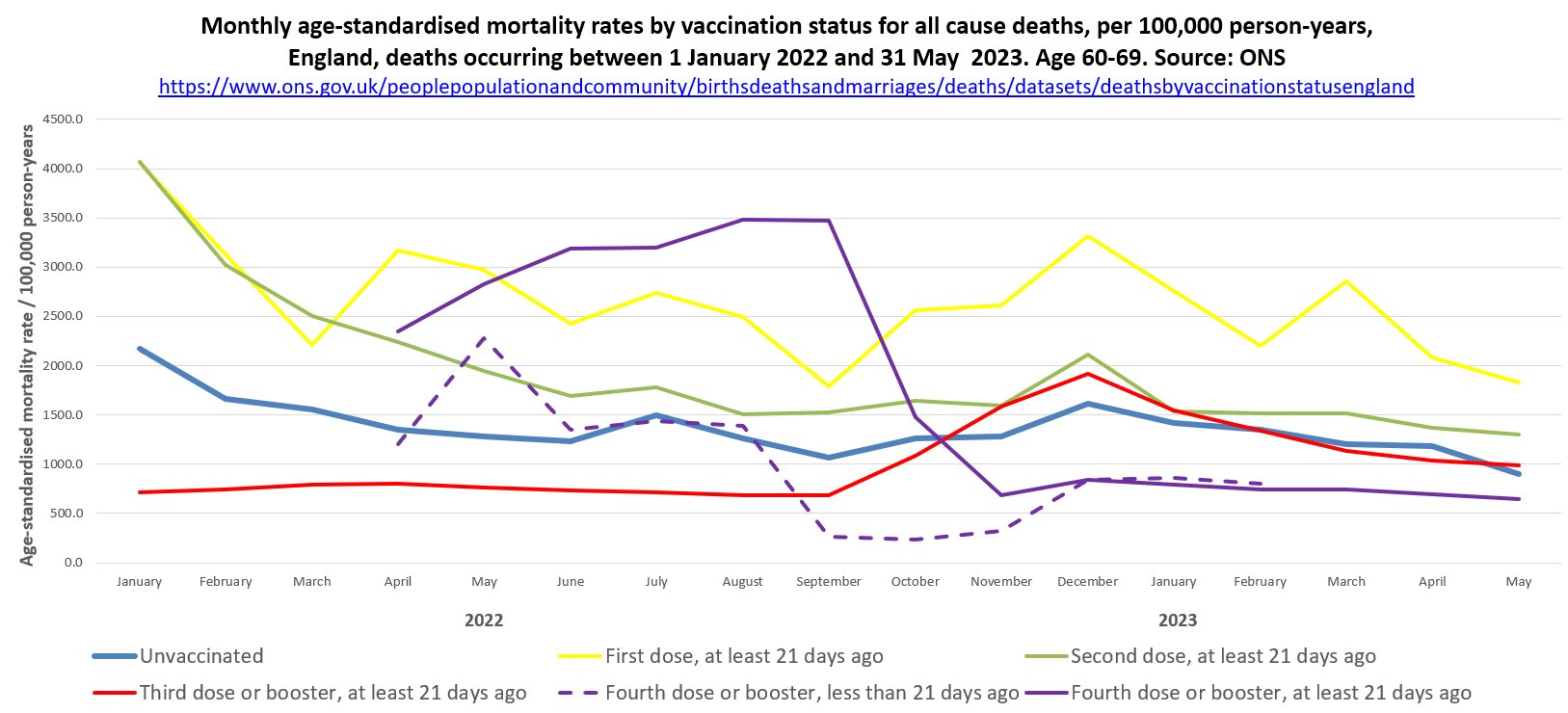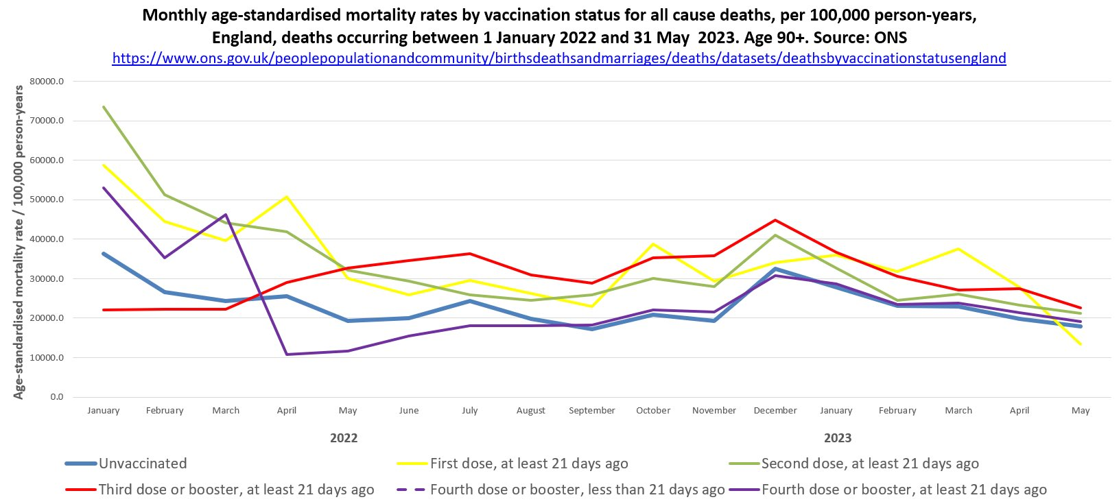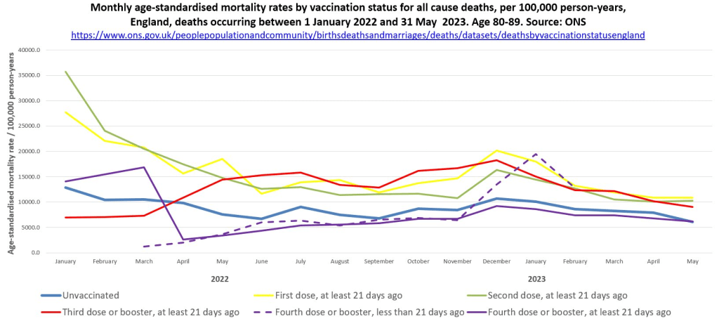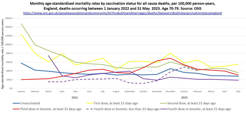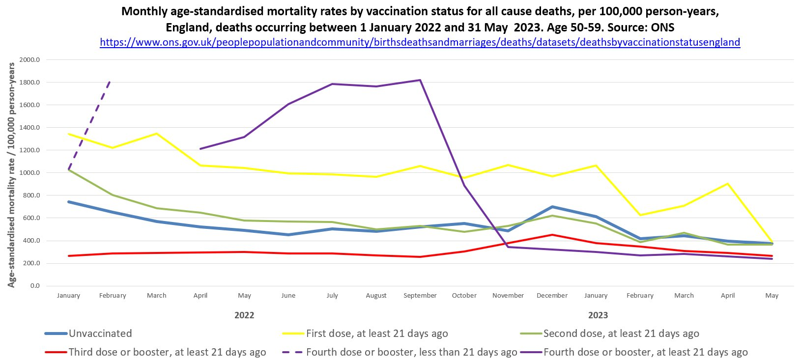 Pour les moins de 50 ans la » vaccination » est un désastre . La mortalité toutes causes des 4 doses et plus était 50 fois plus élevée que celle des non vaccinés au moment où les injections ont eu lieu, à savoir fin 2022. Un an après la mortalité reste 5 fois plus élevée
