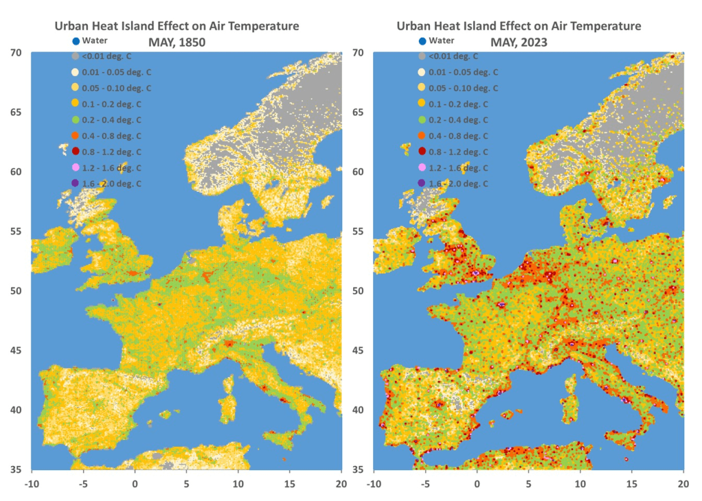 Plus de la moitié du #réchauffementclimatique depuis 1850 est provoqué par l’effet de chaleur urbain. Nous avons vu que les médias rapportent des records de température battus dans diverses villes et confondent généralement la chaleur urbaine avec le réchauffement climatique.