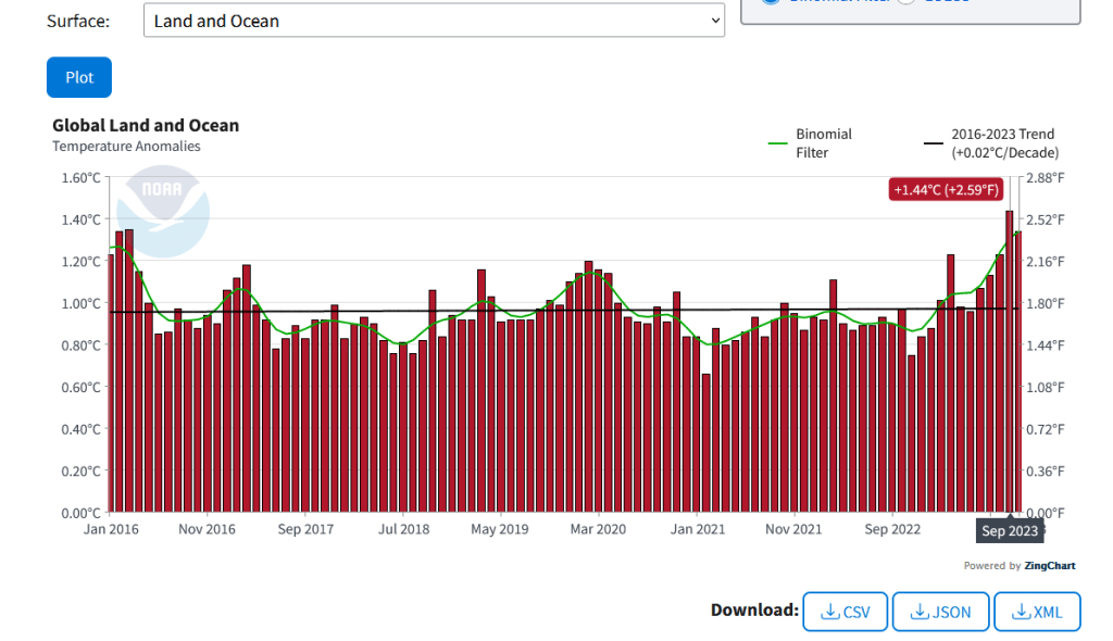 2023 (du 1er Janvier au 31 Décembre) sera bien l’année la plus chaude jamais enregistrée au cours de l’ère industrielle et dépassera 2016