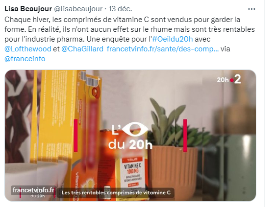 Allez comprendre les journalistes, ils plébiscitent les ARNm dangereux et ils veulent partir en guerre contre la vitamine C qui n’empêche pas la rhume …mais sa sévérité
