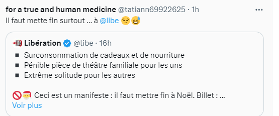 Donc cette dimension écologique, on va dire les gens consomment moins à cause de l’inflation, et pour certains, c’est malheureusement extrêmement vrai, bien sûr, mais pas seulement. Je pense qu’il y a aussi un mouvement, et Noël pourrait devenir la grande fête d’une société écologique où on fait des enfants, parce qu’on a confiance dans l’avenir, et en même temps, on consomme moins, parce qu’on est conscient que ça produit du carbone.