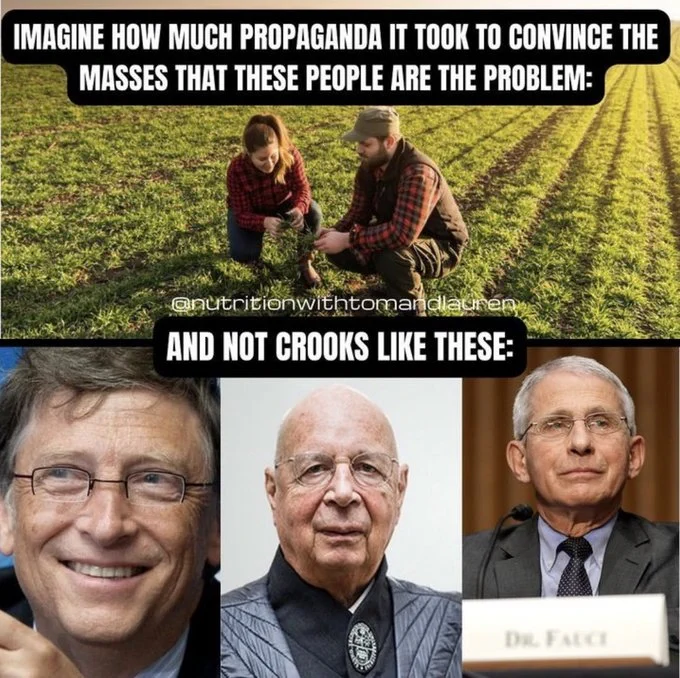 Il faut soutenir la révolte des agriculteurs contre l’offensive des Khmers verts, le bras armé des projets de Carl Schwab, de Bill Gates et de Davos contre la propriété privée et les agriculteurs, qui espèrent ainsi nous nourir d’insectes et de viande artificielle et nous faire i mourir de faim quand ils le voudront pour depeupler la planète à leur profit.