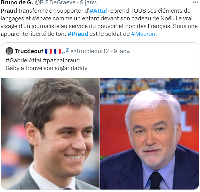 Il y a une limite à la propagande!Praud se plaint d’être traité de porte parole d’Attal En fait il est juste un adorateur.