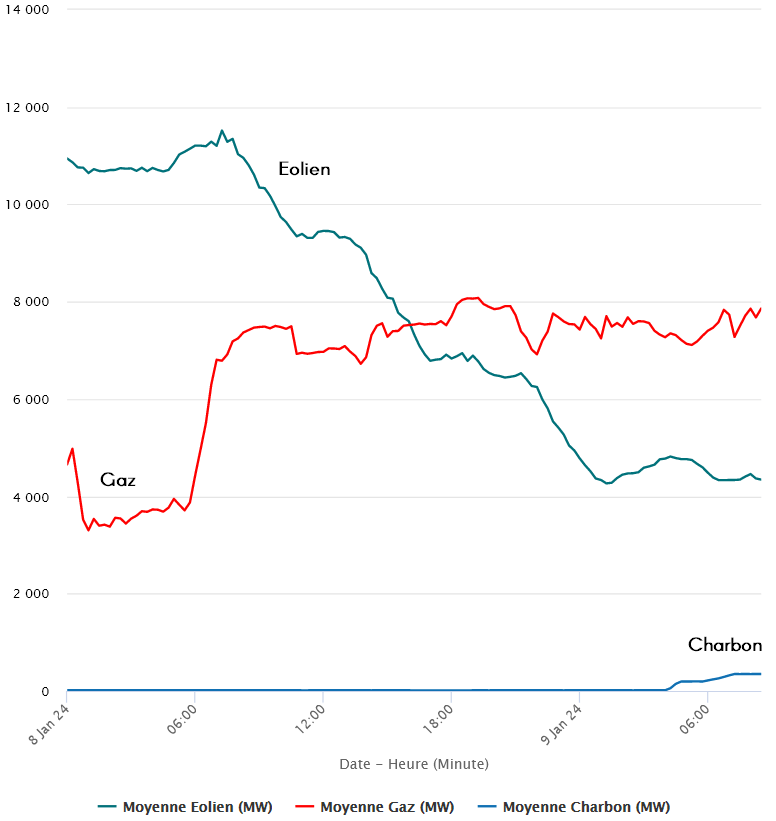 Qui dit hiver ou été dit saisons anticycloniques (pas de vent) et augmentation de la consommation d’énergie. Rien de nouveau sous le soleil, l’éolien c’est intermittent ce qui ne peut être compensé que par des centrales au fuel au gaz et au chabon …Qui fait l’écolo fait la bête…