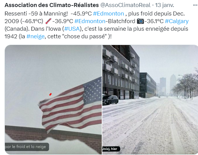 Quand je pense que le kw/h ne cessera pas d’augmenter, que 70% de la facture d’électricité – sur la consommation réelle hors frais fixes de connexion au réseau – des ménages est consacrée au chauffage (dont l’eau chaude), une telle vague de froid fera l’immense fortune de quelques forbans inutiles et parasites, tout en ruinant les Peuples : un transfert de richesse inouï qu’une Révolte civile décriera !