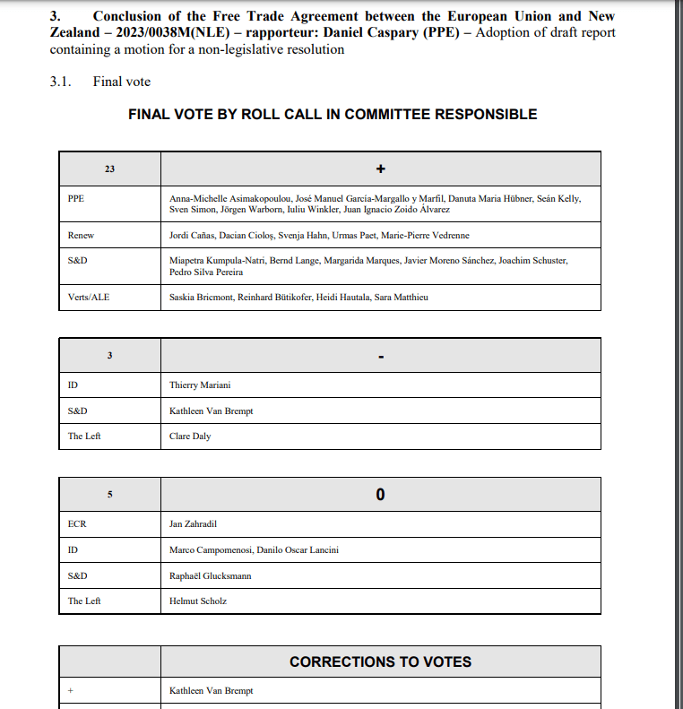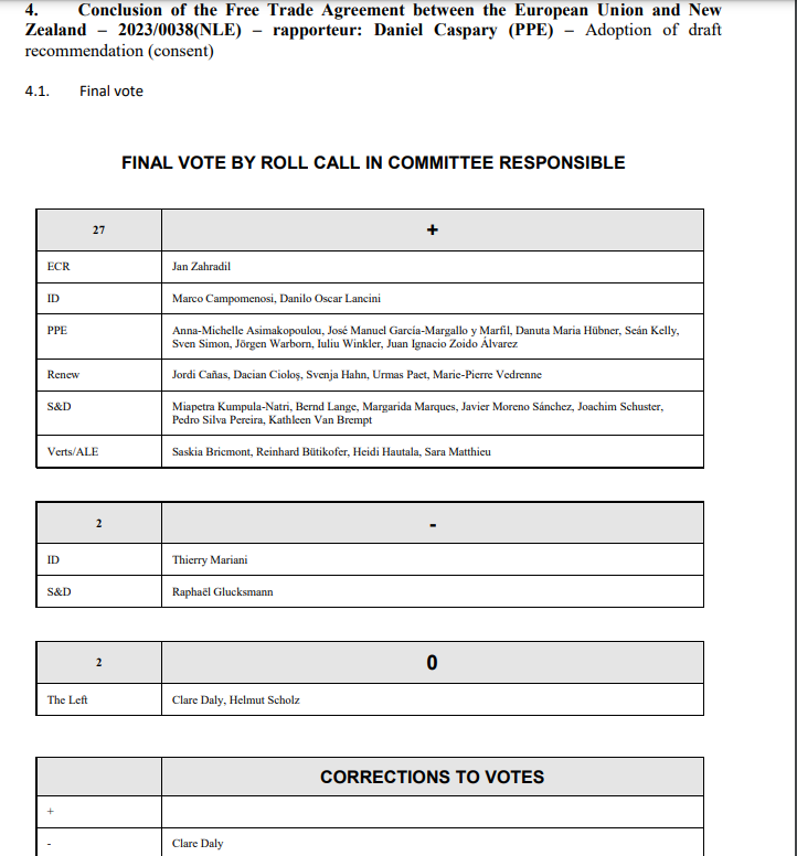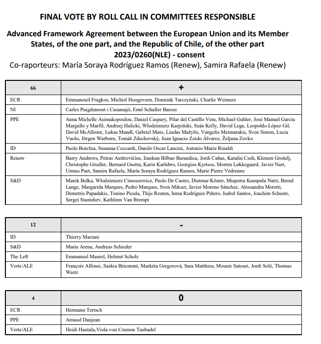 Accord entre Chili N Zélande et UE : QUI VOTE POUR LE LIBRE ECHANGE EN COMMISSION?qui vote contre?