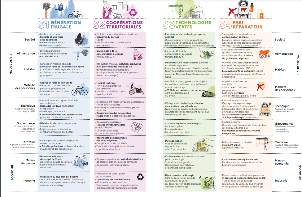 S1 et S2 font le choix d’une mobilisation plus importante de la sobriété en changeant la logique de développement socio-économique : une consommation réduite et des modes de vie