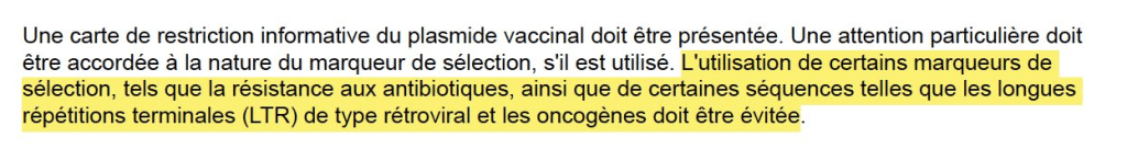Les risques évoqués par ces directives sont effrayants, la production en série de « vaccins est inséparable de la contaminantion par l’adn plasmidique des bactéries et virus utilisés pour les fabriquer .